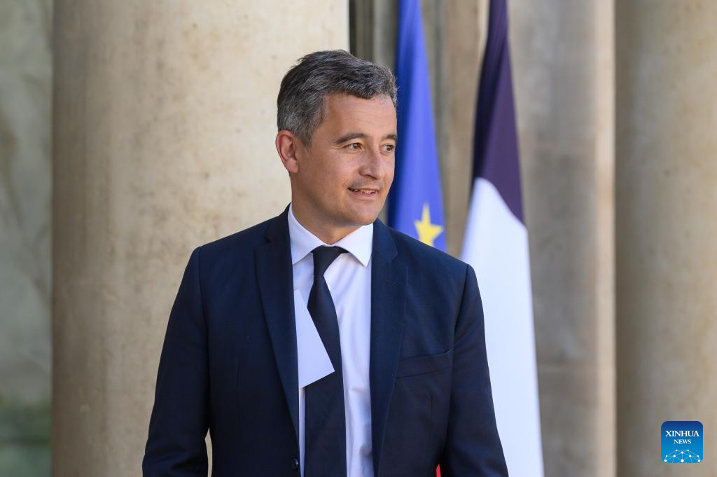 French Interior Minister Gerald Darmanin arrives for the first weekly cabinet meeting of the new cabinet in Paris, France, on July 4, 2022. French President Emmanuel Macron reshuffled his government on Monday for the second time in six weeks, the Elysee (office of the president) announced. (Photo by Julien Mattia/Xinhua)