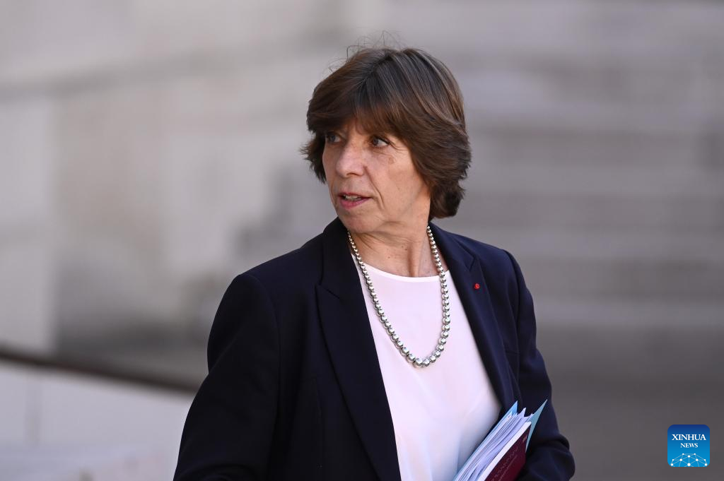 French Minister for Europe and Foreign Affairs Catherine Colonna leaves the first weekly cabinet meeting of the new cabinet in Paris, France, on July 4, 2022. French President Emmanuel Macron reshuffled his government on Monday for the second time in six weeks, the Elysee (office of the president) announced. (Photo by Julien Mattia/Xinhua)