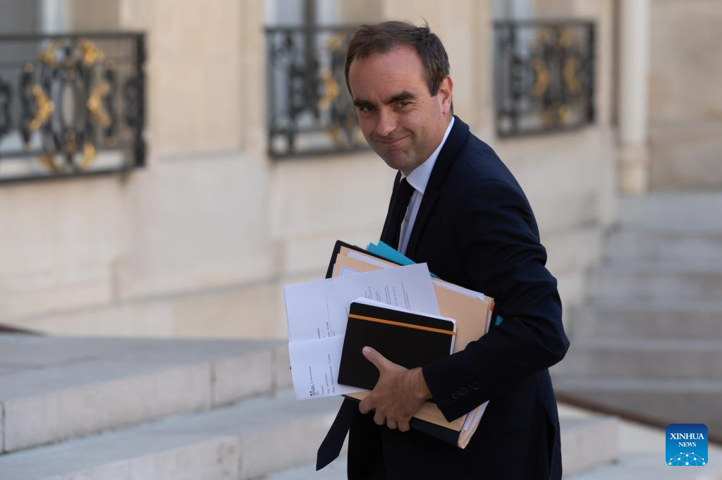French Defense Minister Sebastien Lecornu arrives for the first weekly cabinet meeting of the new cabinet in Paris, France, on July 4, 2022. French President Emmanuel Macron reshuffled his government on Monday for the second time in six weeks, the Elysee (office of the president) announced. (Photo by Julien Mattia/Xinhua)