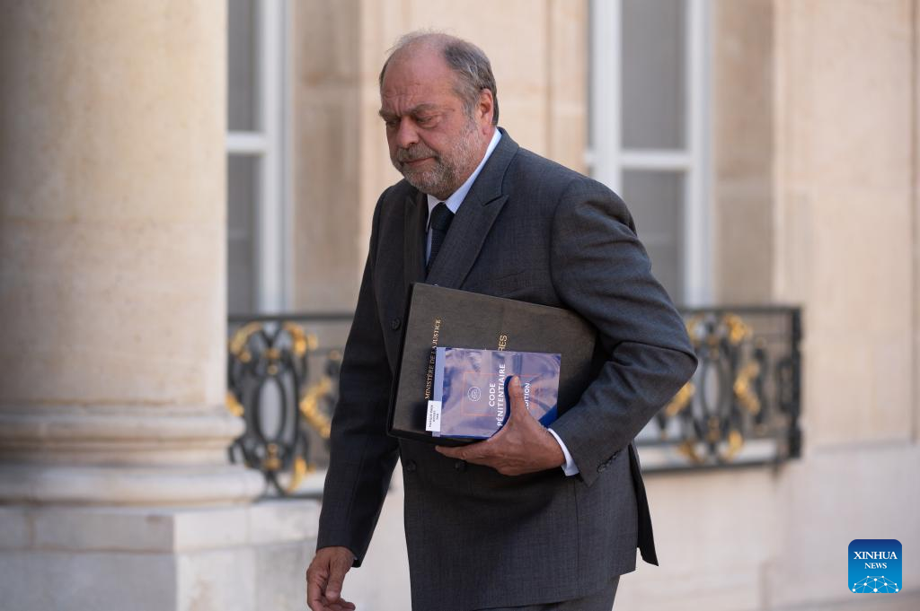 French Justice Minister Eric Dupond-Moretti arrives for the first weekly cabinet meeting of the new cabinet in Paris, France, on July 4, 2022. French President Emmanuel Macron reshuffled his government on Monday for the second time in six weeks, the Elysee (office of the president) announced. (Photo by Julien Mattia/Xinhua)