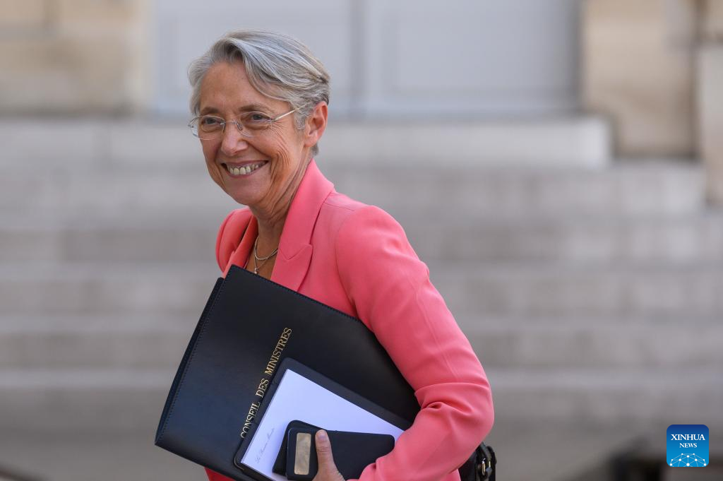 French Prime Minister Elisabeth Borne arrives for the first weekly cabinet meeting of the new cabinet in Paris, France, on July 4, 2022. French President Emmanuel Macron reshuffled his government on Monday for the second time in six weeks, the Elysee (office of the president) announced. (Photo by Julien Mattia/Xinhua)