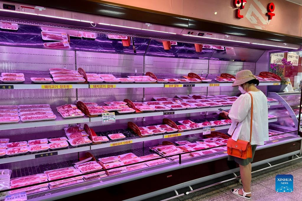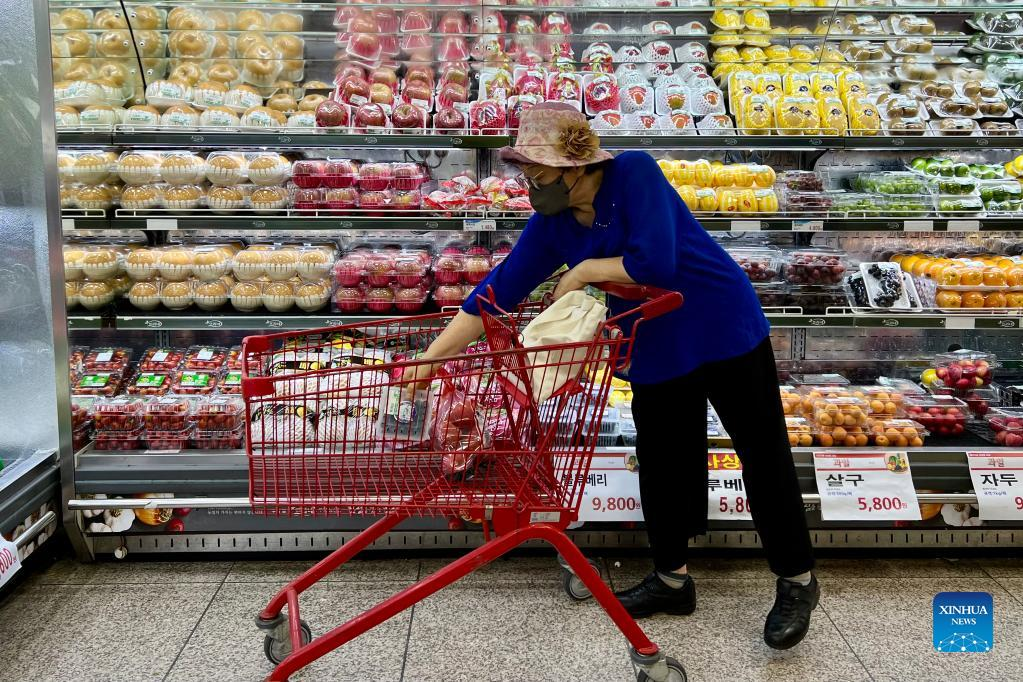 A woman shops at a supermarket in Seoul, South Korea, July 5, 2022. South Korea's headline inflation hit the highest in nearly 24 years in June owing to surging energy prices and higher eating-out costs, statistical office data showed Tuesday. (Xinhua/Wang Yiliang)