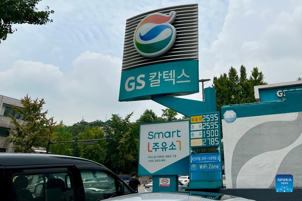 Photo taken on July 5, 2022 shows the price board at a gas station in Seoul, South Korea. South Korea's headline inflation hit the highest in nearly 24 years in June owing to surging energy prices and higher eating-out costs, statistical office data showed Tuesday. (Xinhua/Wang Yiliang)