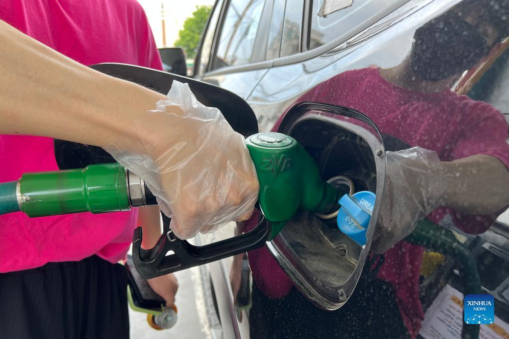 A man pumps diesel oil at a self-service gasoline station in Seoul, South Korea, June 10, 2022. South Korea's headline inflation hit the highest in nearly 24 years in June owing to surging energy prices and higher eating-out costs, statistical office data showed Tuesday. (Xinhua/Wang Yiliang)