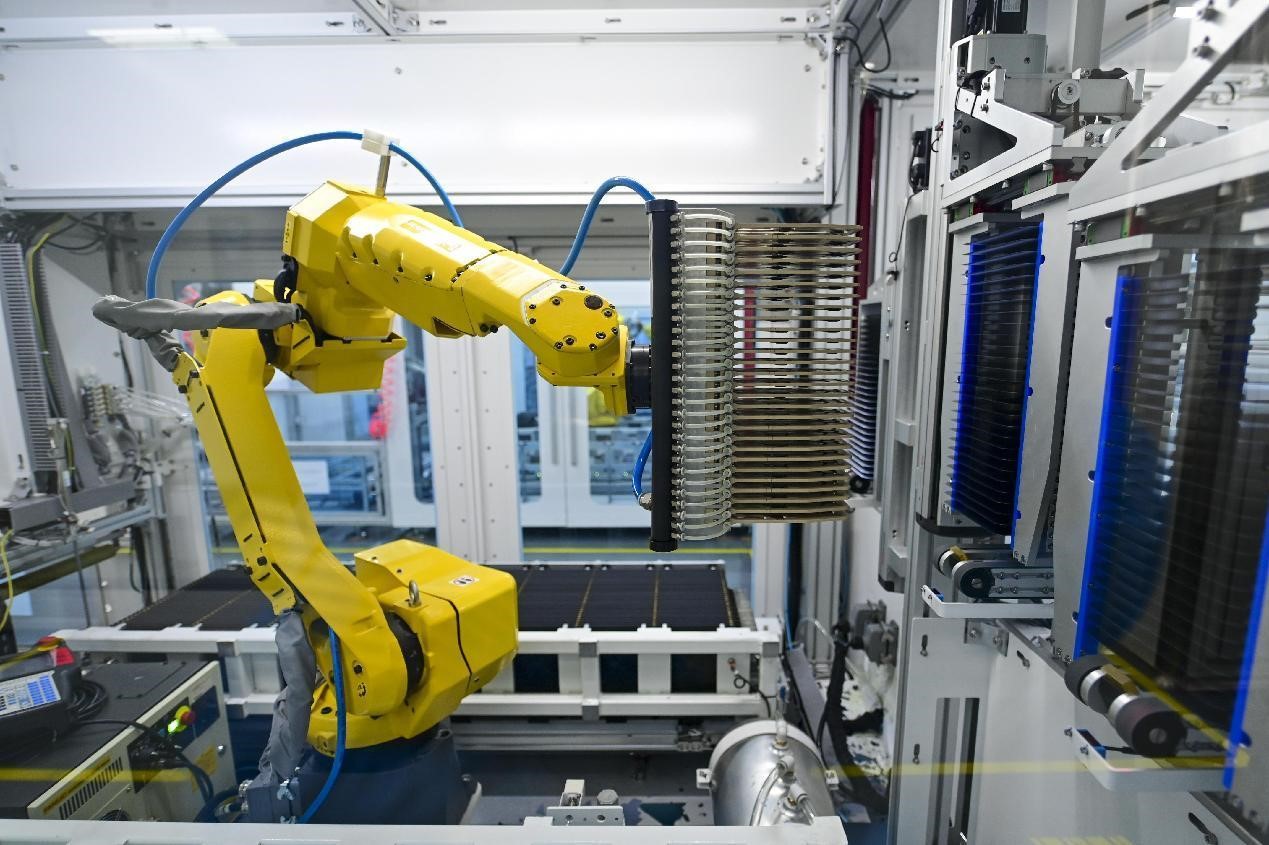 A robotic arm controlled through 5G network works in a factory in Jinhua, east China's Zhejiang province, Dec. 13, 2021. (People's Daily Online/Hu Xiaofei)