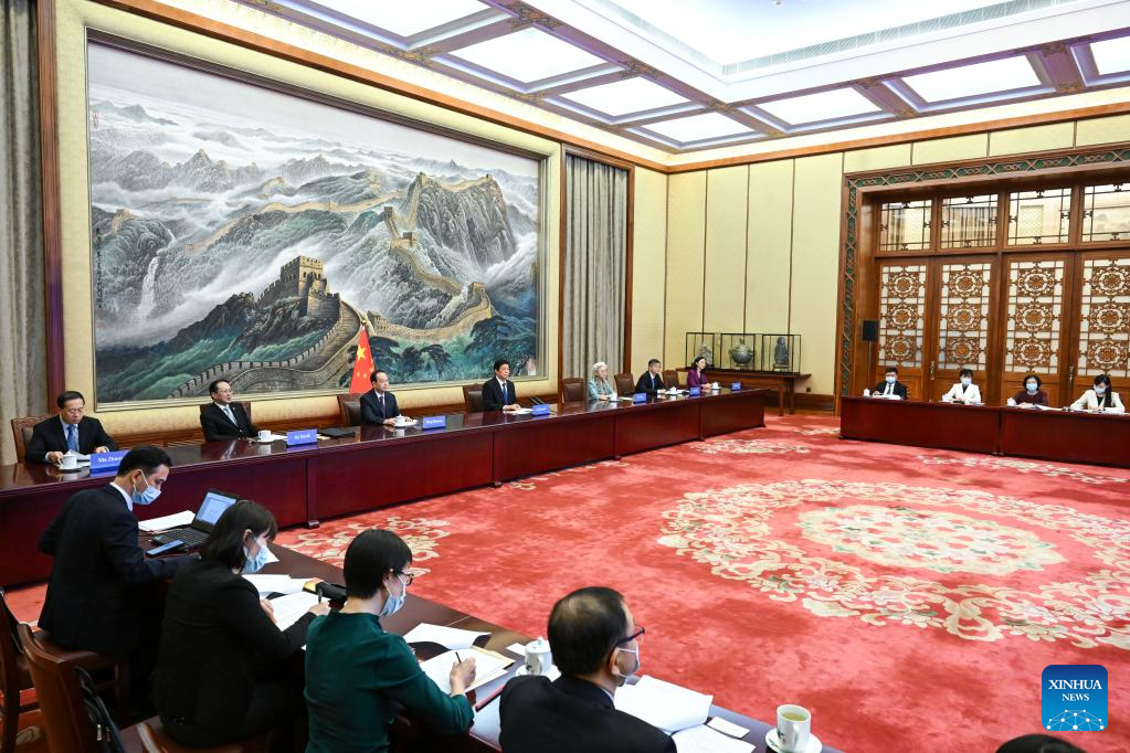BEIJING, July 6 (Xinhua) -- China's top legislator Li Zhanshu on Wednesday held talks with Tanzila Narbayeva, chairperson of the Senate of Uzbekistan, via video link, with the two sides agreeing to enhance parliamentary exchanges to facilitate the development of bilateral relations.