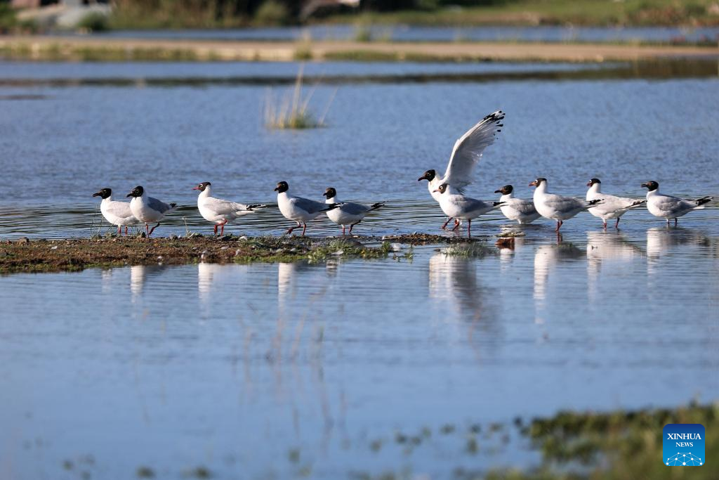 Photo taken on July 6, 2022 shows relict gulls (larus relictus) at Kangba Noel National Wetland Park in Kangbao County of Zhangjiakou City, north China's Hebei Province.