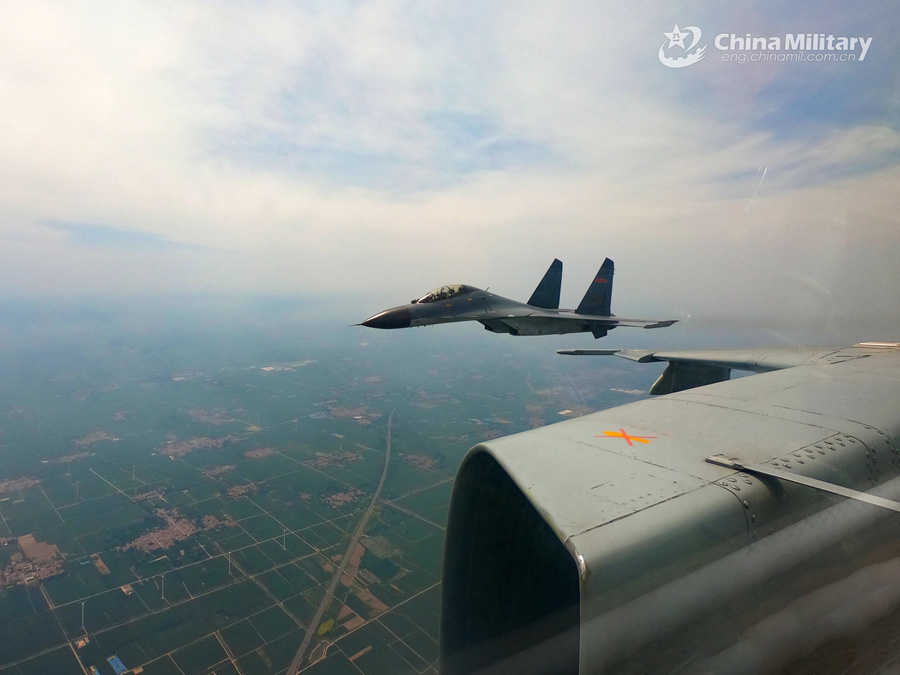 Two fighter jets attached to a training base of the PLA Air Force fly in formation during a flight training exercise on May 26, 2022. (eng.chinamil.com.cn/Photo by Wang Guodong)