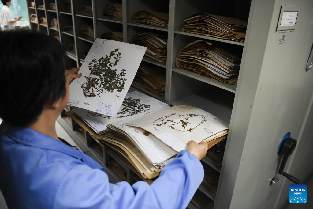 A staff member sorts out plants samples at South China National Botanical Garden in Guangzhou, capital of south China's Guangdong Province, July 4, 2022. China's second national botanical garden South China National Botanical Garden was officially inaugurated here Monday, after the country's first was unveiled in its capital city Beijing in April of this year. (Xinhua/Deng Hua)