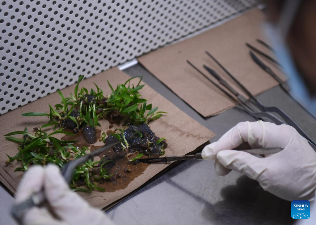 A staff member checks on test-tube plantlets at South China National Botanical Garden in Guangzhou, capital of south China's Guangdong Province on July 4, 2022. China's second national botanical garden South China National Botanical Garden was officially inaugurated here Monday, after the country's first was unveiled in its capital city Beijing in April of this year. (Xinhua/Deng Hua)