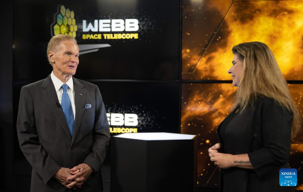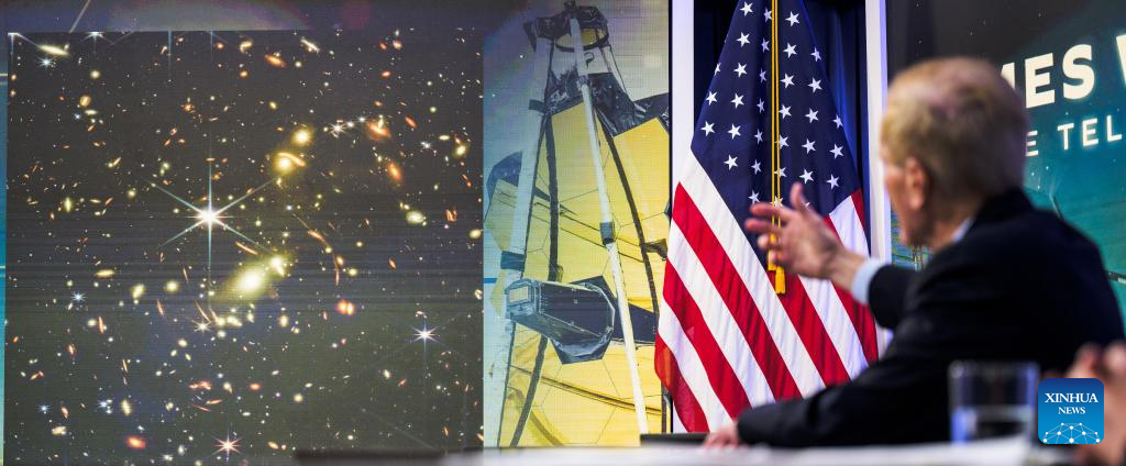 LOS ANGELES, July 12 (Xinhua) -- NASA released James Webb Space Telescope's first full-color images of the universe and their spectroscopic data on Tuesday, revealing the unprecedented and detailed views of the universe.