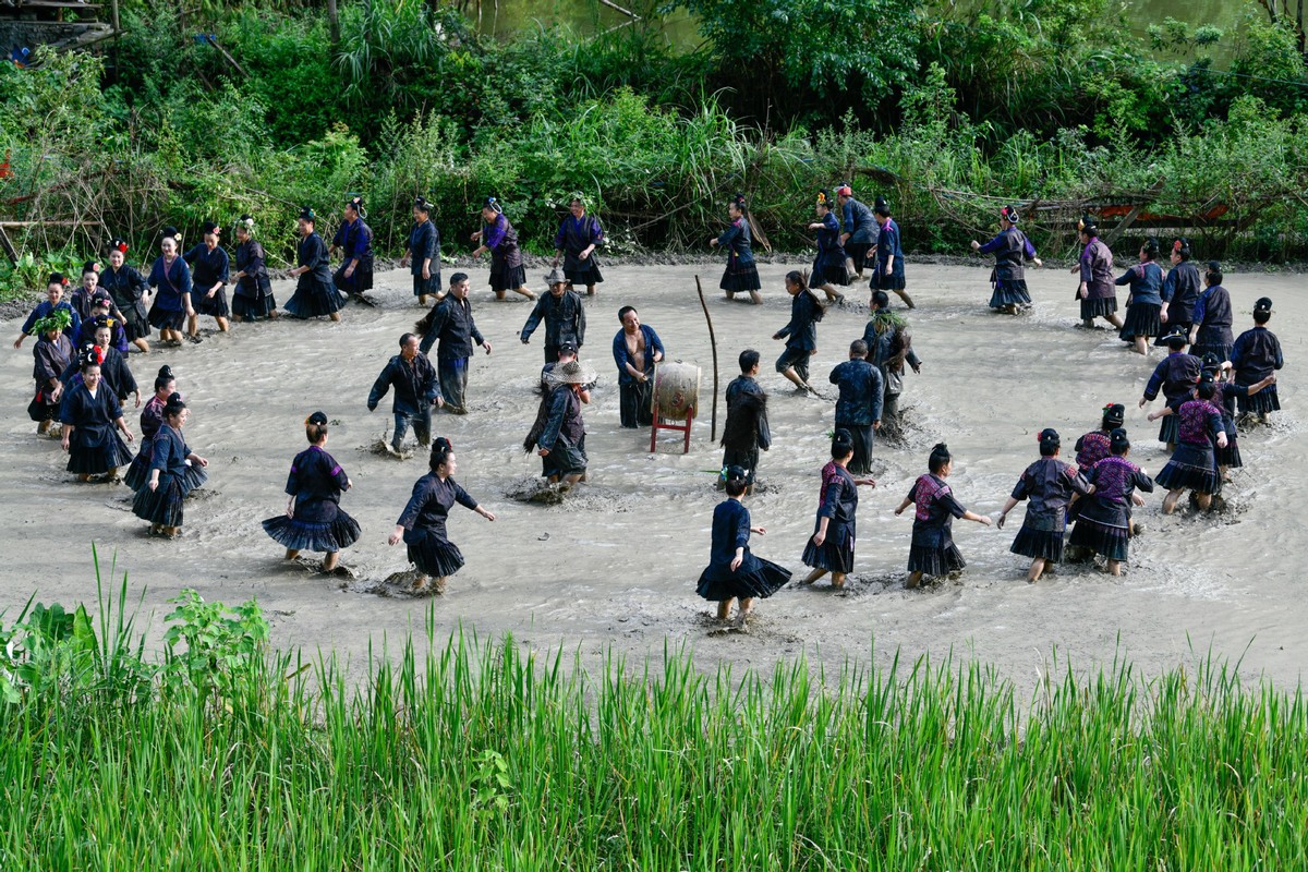 Villagers perform the water-drum dance at Jianhe county in Southwest China's Guizhou province on July 8. [Photo/Xinhua]