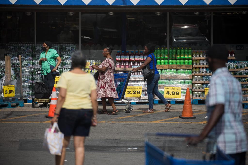 People are seen at the parking lot of a grocery store in the Brooklyn borough of New York, the United States, on June 10, 2022. (Photo by Michael Nagle/Xinhua)