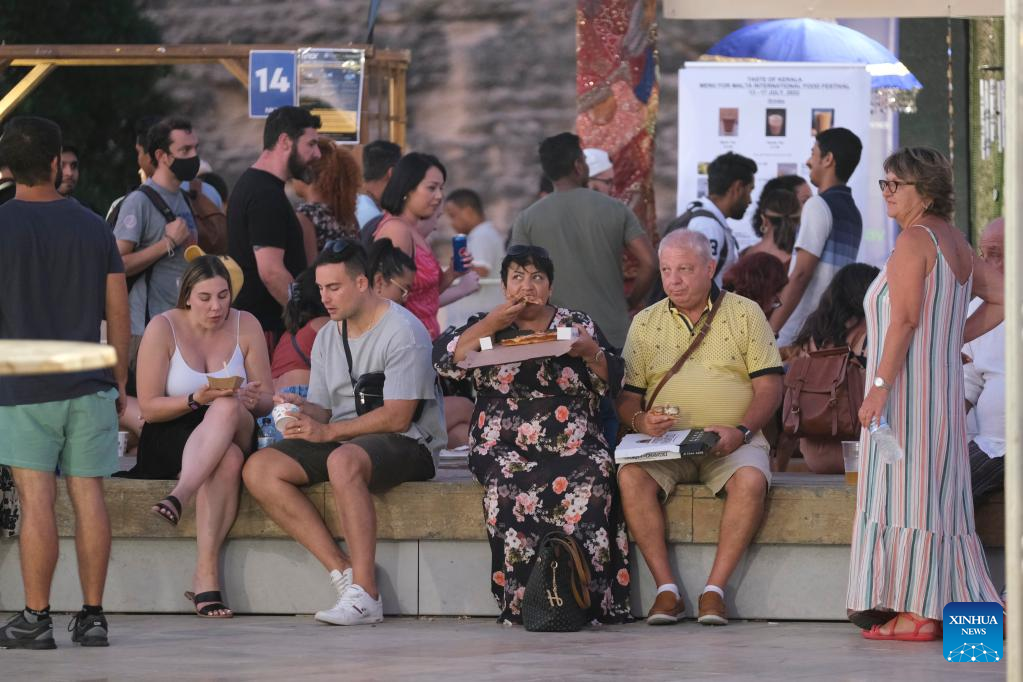 People take part in the Malta International Food Festival in Valletta, Malta, on July 13, 2022. (Photo by Jonathan Borg/Xinhua)