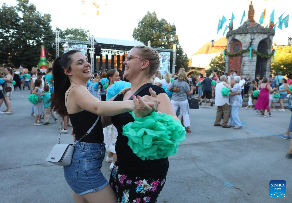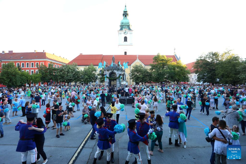 People dance during a birthday ball in Karlovac, Croatia, on July 13, 2022. A total of 443 couples danced during the birthday ball in central Karlovac to celebrate the 443rd anniversary of its creation on Wednesday. (Kristina Stedul Fabac/PIXSELL via Xinhua)