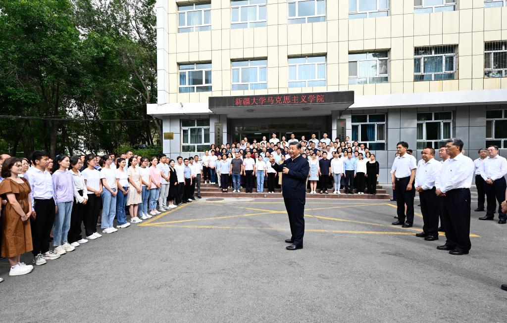 Xi visited Xinjiang University, the Urumqi International Land Port Area, the community of Guyuanxiang in the Tianshan District and the Museum of the Xinjiang Uygur Autonomous Region.