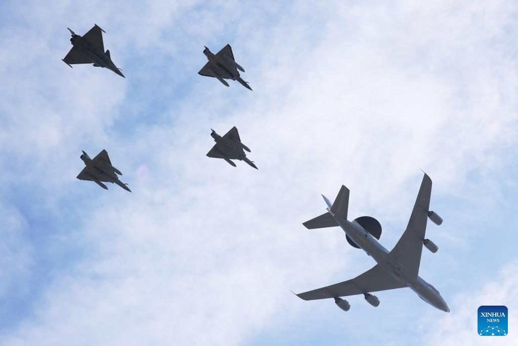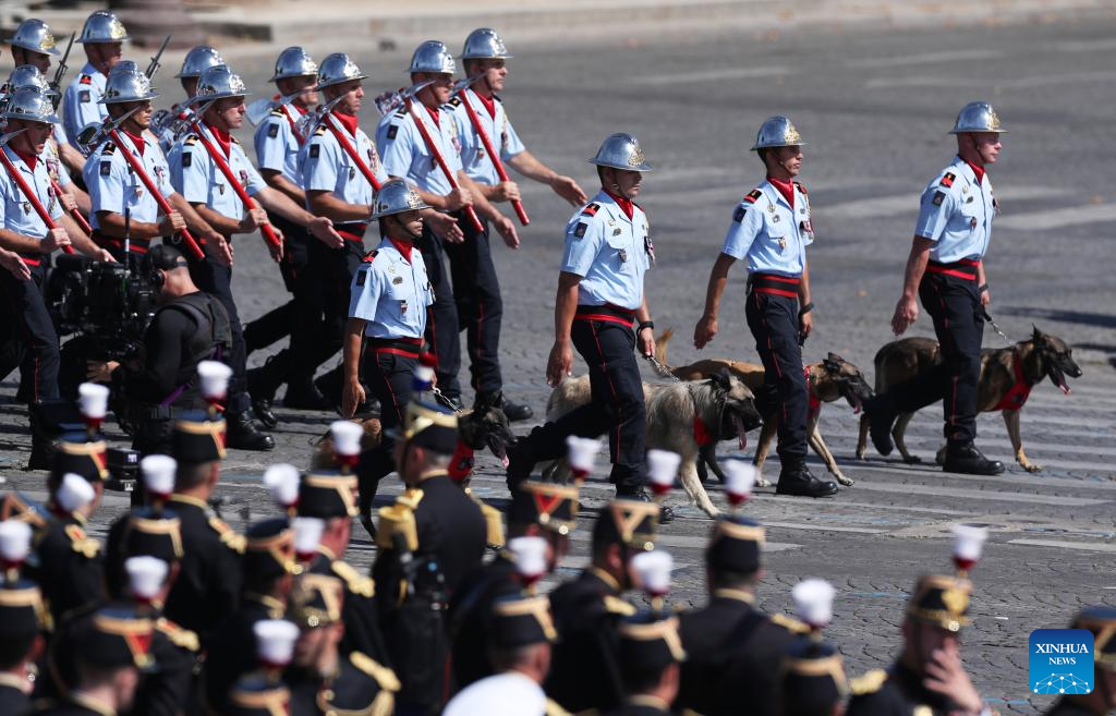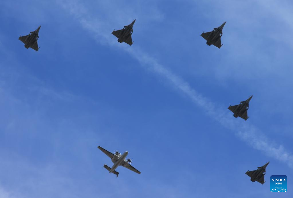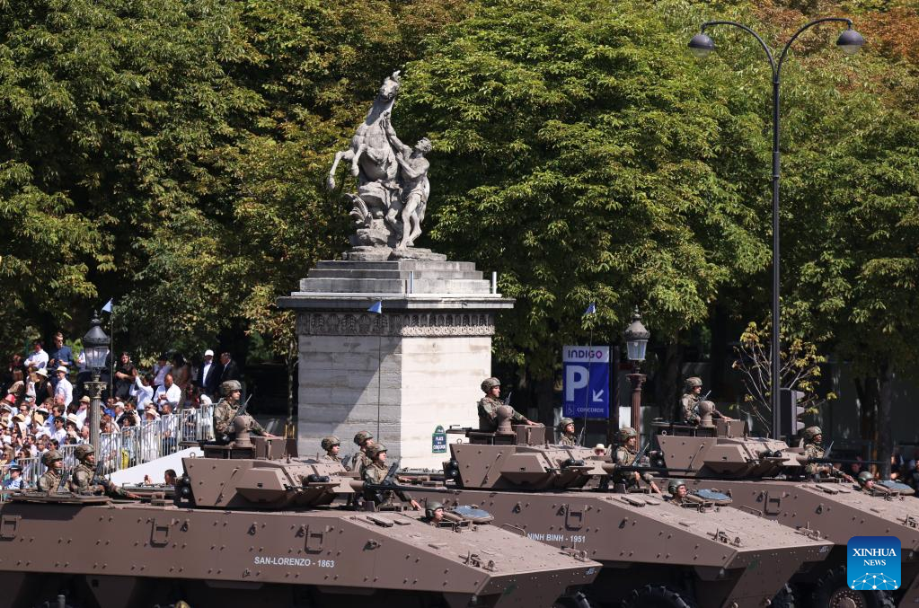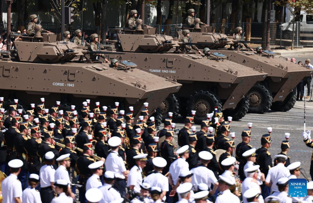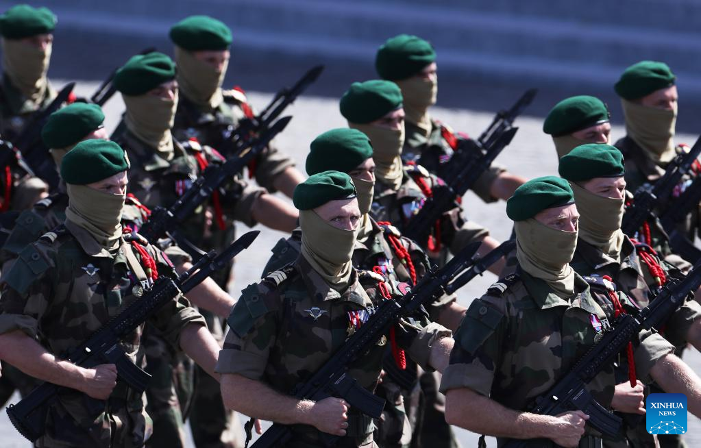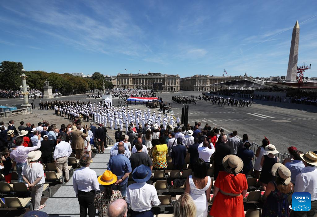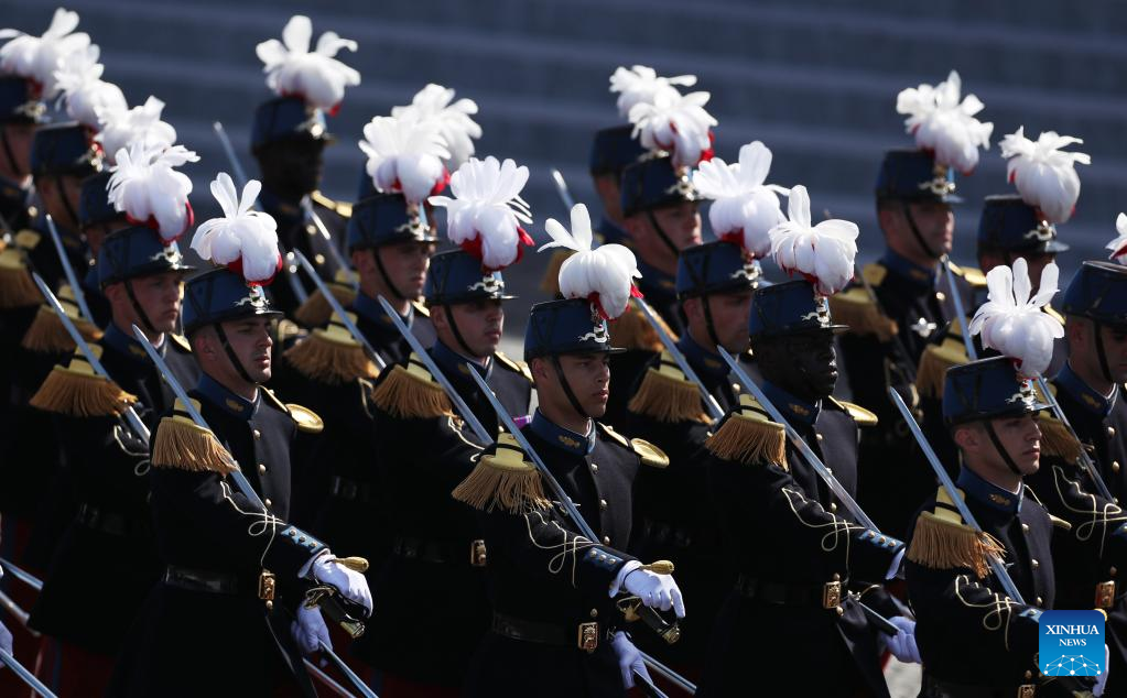 Annual Bastille Day military parade is seen at the Place de la Concorde in Paris, France, July 14, 2022. France on Thursday held its annual Bastille Day celebrations with a traditional military parade. (Xinhua/Gao Jing)