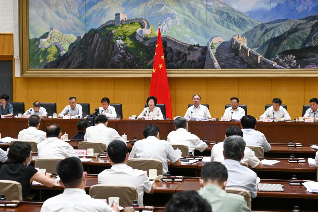 Chinese Vice Premier Sun Chunlan attends and addresses a national teleconference on medical reform in Beijing, capital of China, July 14, 2022. (Xinhua/Rao Aimin)