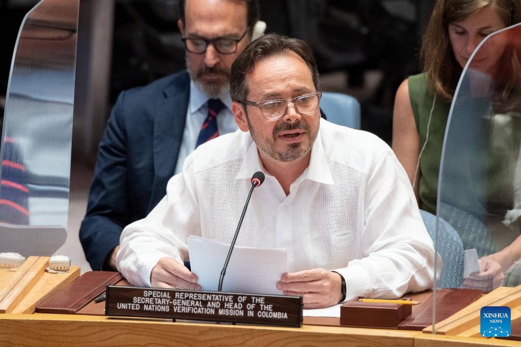 UNITED NATIONS, July 14 (Xinhua) -- The top UN envoy for Colombia, Carlos Ruiz Massieu, on Thursday hailed the encouraging political developments in Colombia and warned against persistent violence as an obstacle to the consolidation of peace in the country.