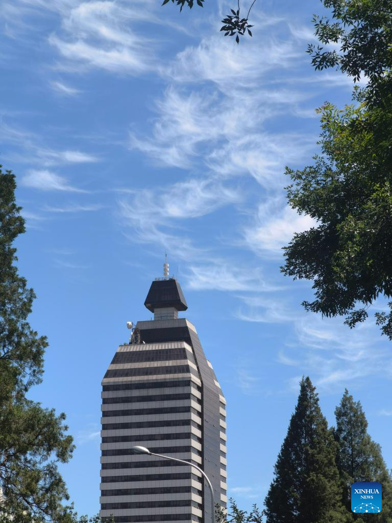 Photo taken with a mobile phone shows clouds during a sunny day in Beijing, capital of China, July 14, 2022. (Xinhua/Ma Ning)