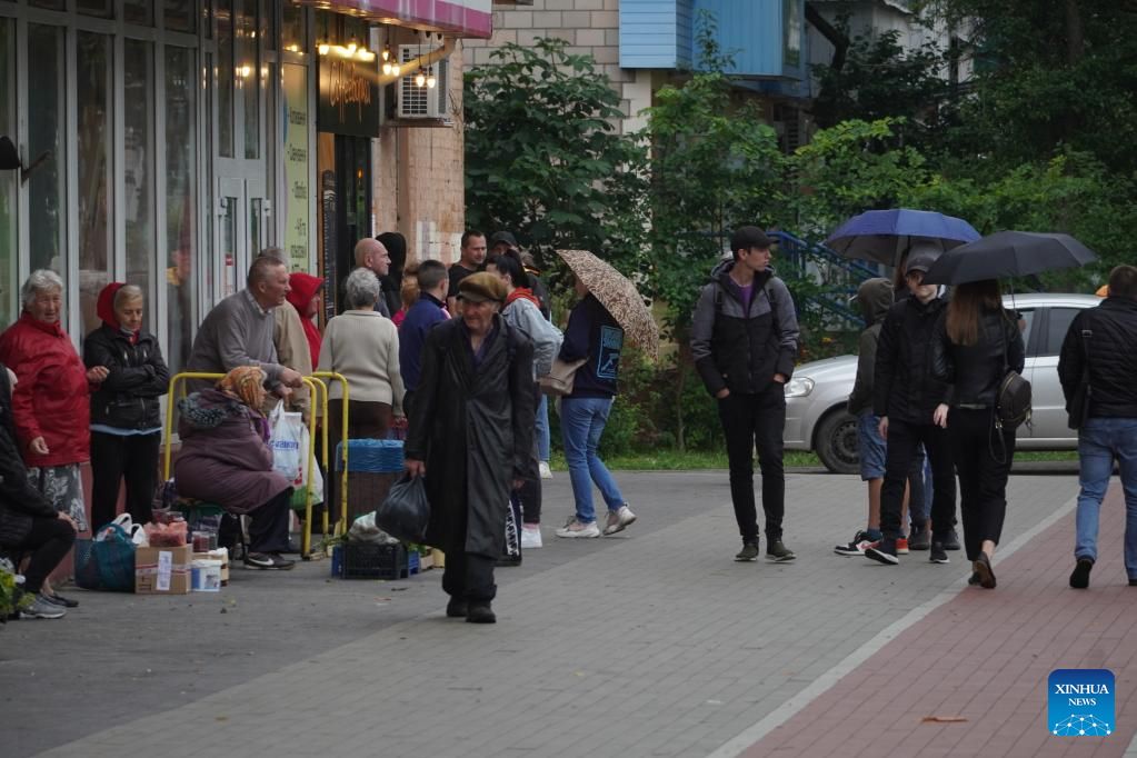 People stand outside a store in Chernihiv, Ukraine, July 13, 2022. (Photo by Roman Petushkov/Xinhua)