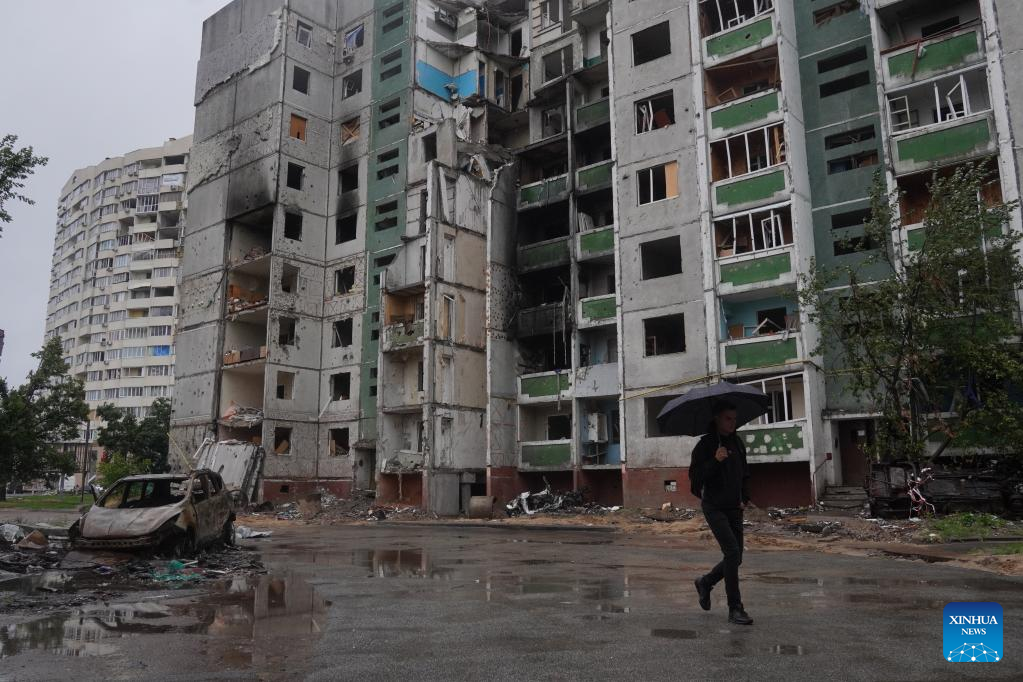Photo taken on July 13, 2022 shows a building in Chernihiv, Ukraine. (Photo by Roman Petushkov/Xinhua)