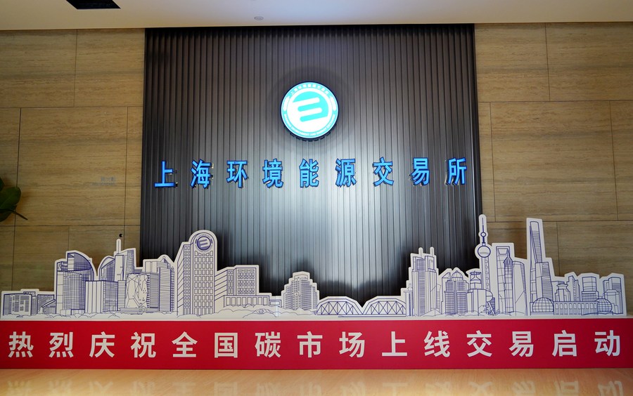 Photo taken on July 16, 2021 shows a view of the Shanghai Environment and Energy Exchange in east China's Shanghai. (Xinhua/Cheng Siqi)