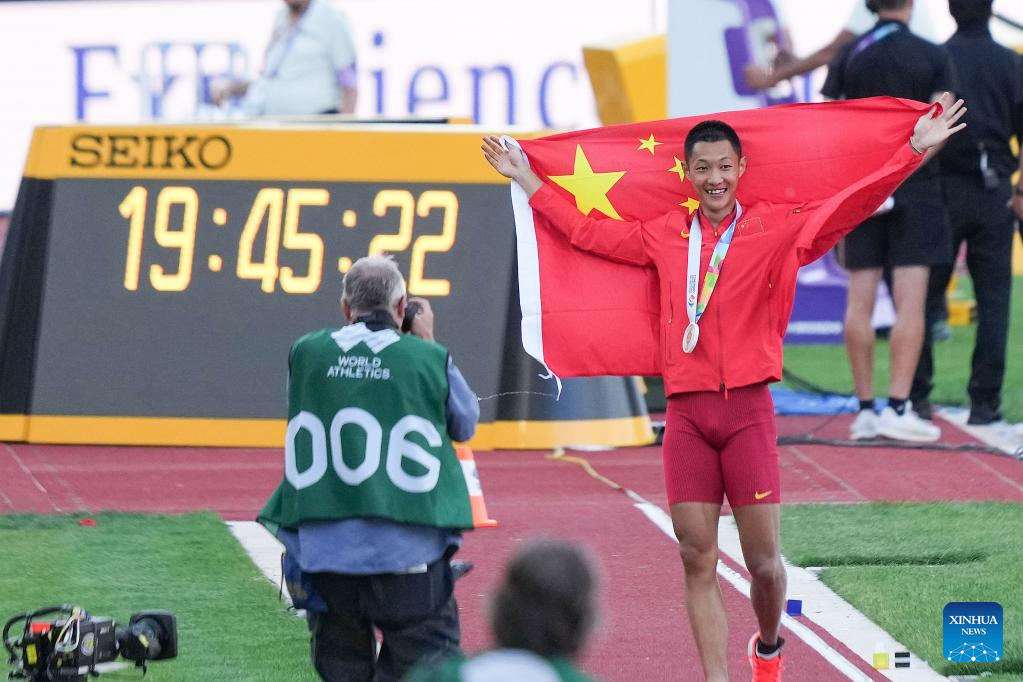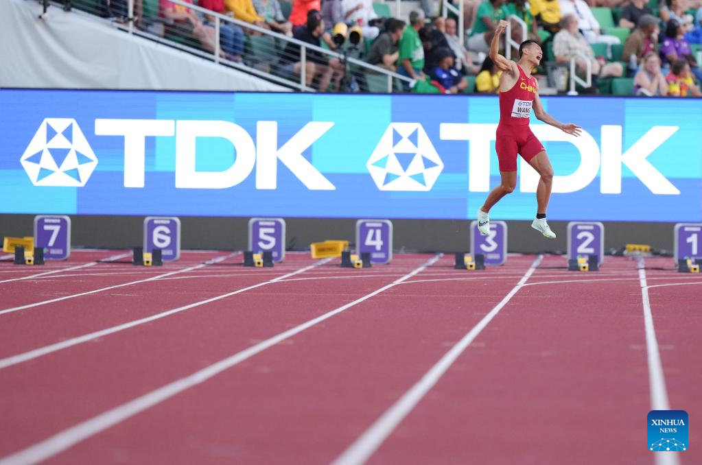 EUGENE, United States, July 16 (Xinhua) -- Wang Jianan stunned the field to grab China's first ever long jump gold medal at the world athletics championships here on Saturday.