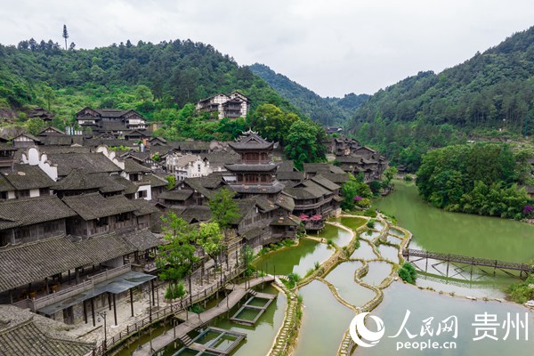 Photo shows an aerial view of Wujiang village in Zunyi city, southwest China's Guizhou Province. (People's Daily Online/Tu Min)