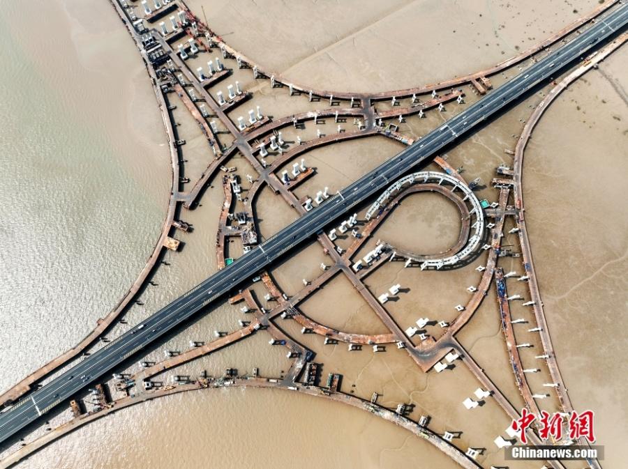 Photo shows the construction site of the Asia's largest maritime expressway interchange hub in Ningbo, east China's Zhejiang Province, July 17, 2022. (Photo provided to China News Service)