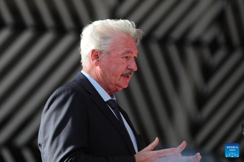 Luxembourg's Minister for Foreign and European Affairs Jean Asselborn speaks to the press before the meeting of the EU Foreign Affairs Council in Brussels, Belgium, July 18, 2022. (Xinhua/Zheng Huansong)