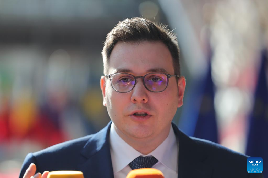 Czech Foreign Minister Jan Lipavsky speaks to the press before the meeting of the EU Foreign Affairs Council in Brussels, Belgium, July 18, 2022. (Xinhua/Zheng Huansong)