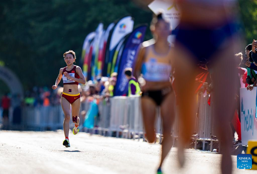 China's Li Zhixuan competes during the women's marathon final at the World Athletics Championships Oregon22 in Eugene, Oregon, the United States, July 18, 2022. (Xinhua/Wang Ying)