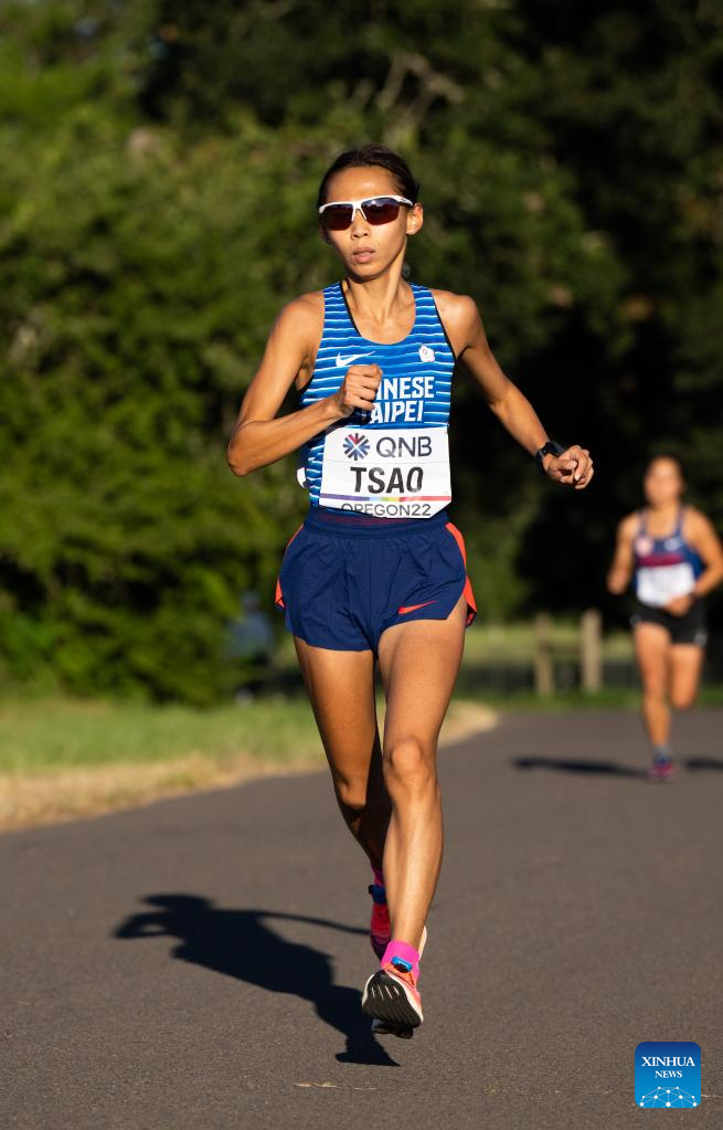 Tsao Chun-Yu of Chinese Taipei competes during the women's marathon final at the World Athletics Championships Oregon22 in Eugene, Oregon, the United States, July 18, 2022. (Xinhua/Wang Ying)