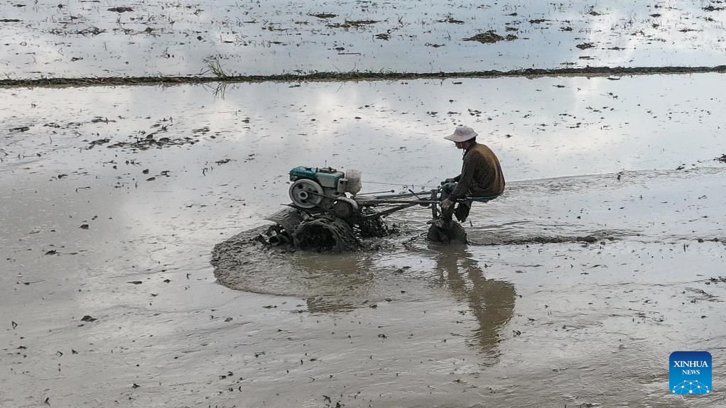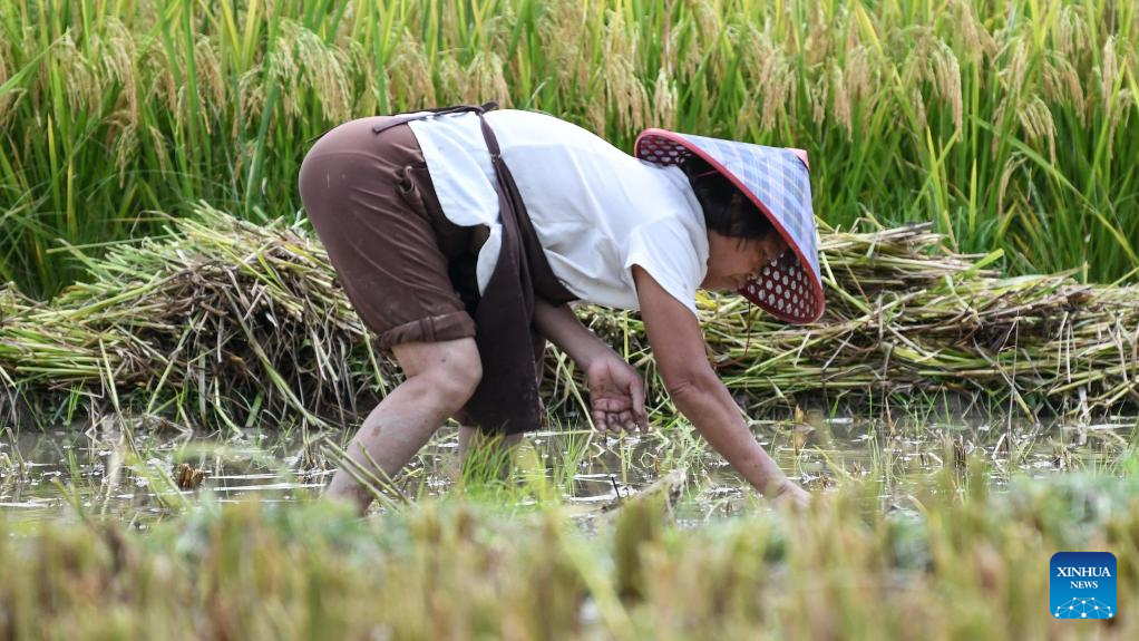 A farmer works in a paddy field in Mingfeng Village, Dahua Yao Autonomous County, south China's Guangxi Zhuang Autonomous Region, July 20, 2022. (Xinhua/Zhang Ailin)