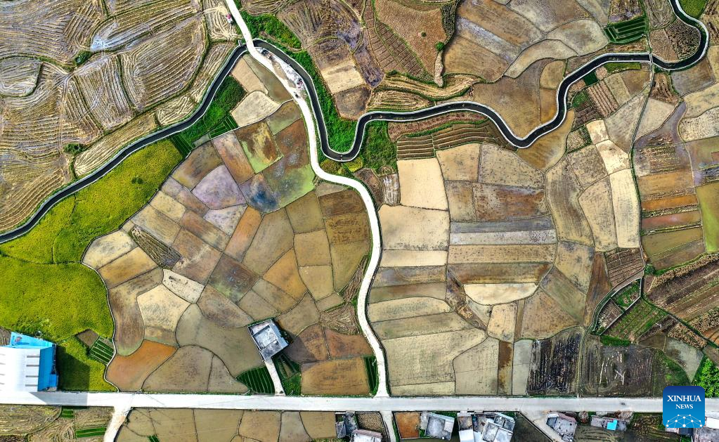 Aerial photo taken on July 20, 2022 shows paddy fields in Longkou Village, Dahua Yao Autonomous County, south China's Guangxi Zhuang Autonomous Region. (Xinhua/Zhang Ailin)