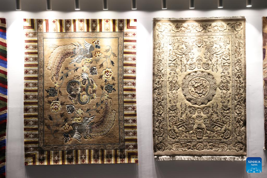 Tibetan carpets are displayed at a factory in Xining, northwest China's Qinghai Province, July 8, 2022.