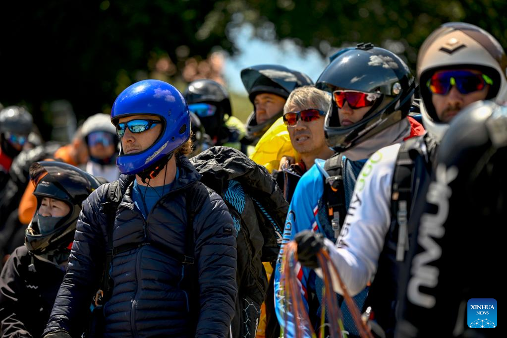 Pilots prepare during the 2022 Paragliding World Cup in Krushevo, North Macedonia, on July 20, 2022. The event is held here from July 14 to 21, 2022. (Photo by Tomislav Georgiev/Xinhua)