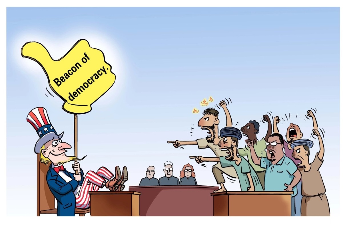 The U.S. pursues militarism under the pretext of “democracy.” It is in no position to lecture or judge others about democracy. Facing widespread denunciation by refugees and migrants from many countries, the U.S. should be put in the dock.
