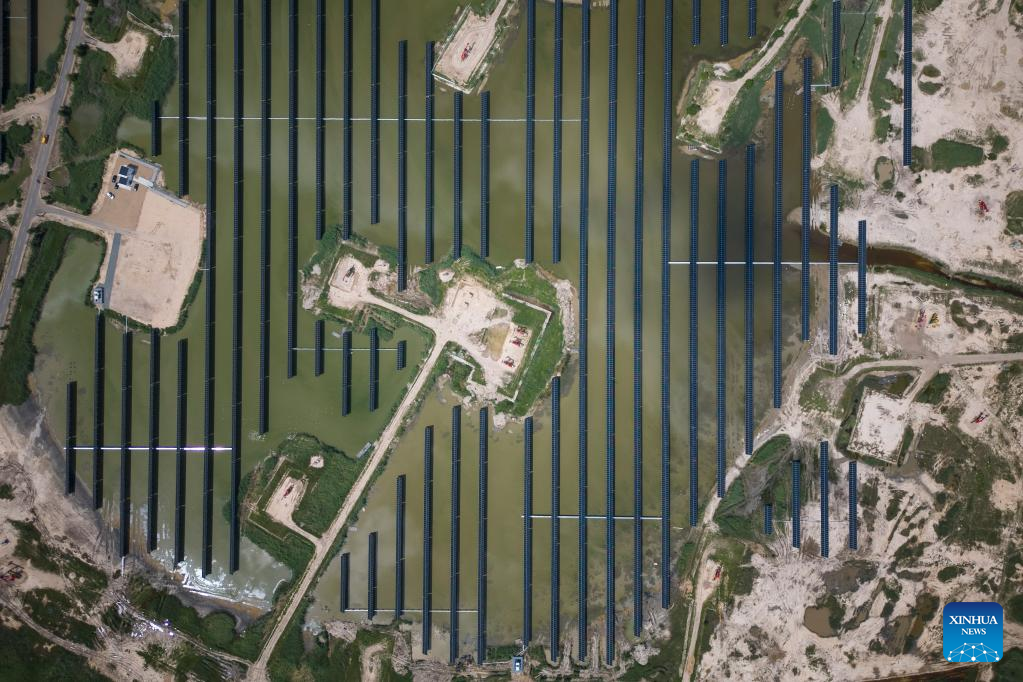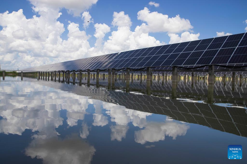 Photo taken on July 21, 2022 shows the Xinghuo Water Surface Photovoltaic Demonstration Project of Daqing Oilfield in Daqing, northeast China's Heilongjiang Province.