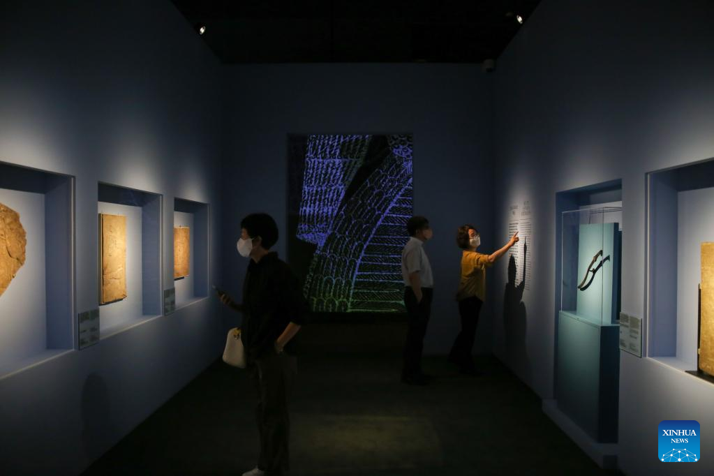 Visitors view exhibits at the Mesopotamian Gallery of the National Museum of Korea in Seoul, South Korea, July 21, 2022. The National Museum of Korea has recently established the Mesopotamian Gallery within its Permanent Exhibition Hall and is presenting an exhibition of Mesopotamian cultural heritage. The exhibition will run from July 22, 2022 to Jan. 28, 2024. (Xinhua/Wang Yiliang)