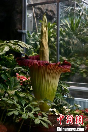 A Corpse Flower blooms at the National Botanical Garden in Beijing, July 20, 2022. (China News Service/Yi Haifei)