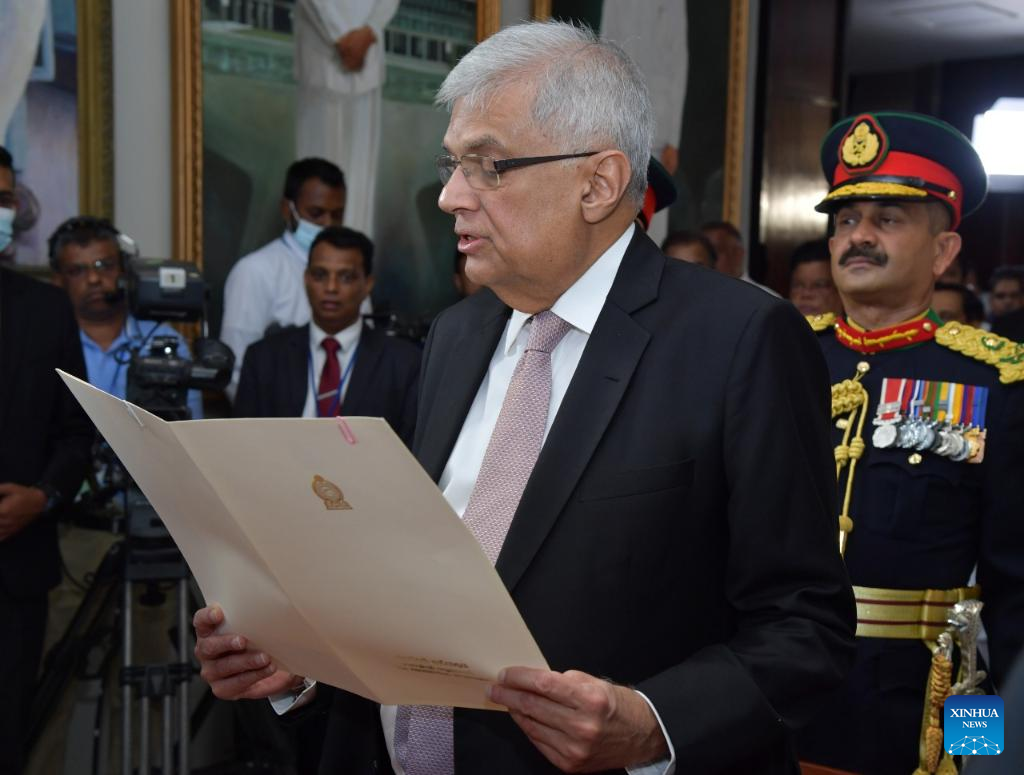 Ranil Wickremesinghe attends a swearing-in ceremony in the parliament in Colombo, Sri Lanka, July 21, 2022. Ranil Wickremesinghe was sworn in as the president of Sri Lanka on Thursday in the parliament before Chief Justice Jayantha Jayasuriya. (Sri Lankan President's Office/Handout via Xinhua)