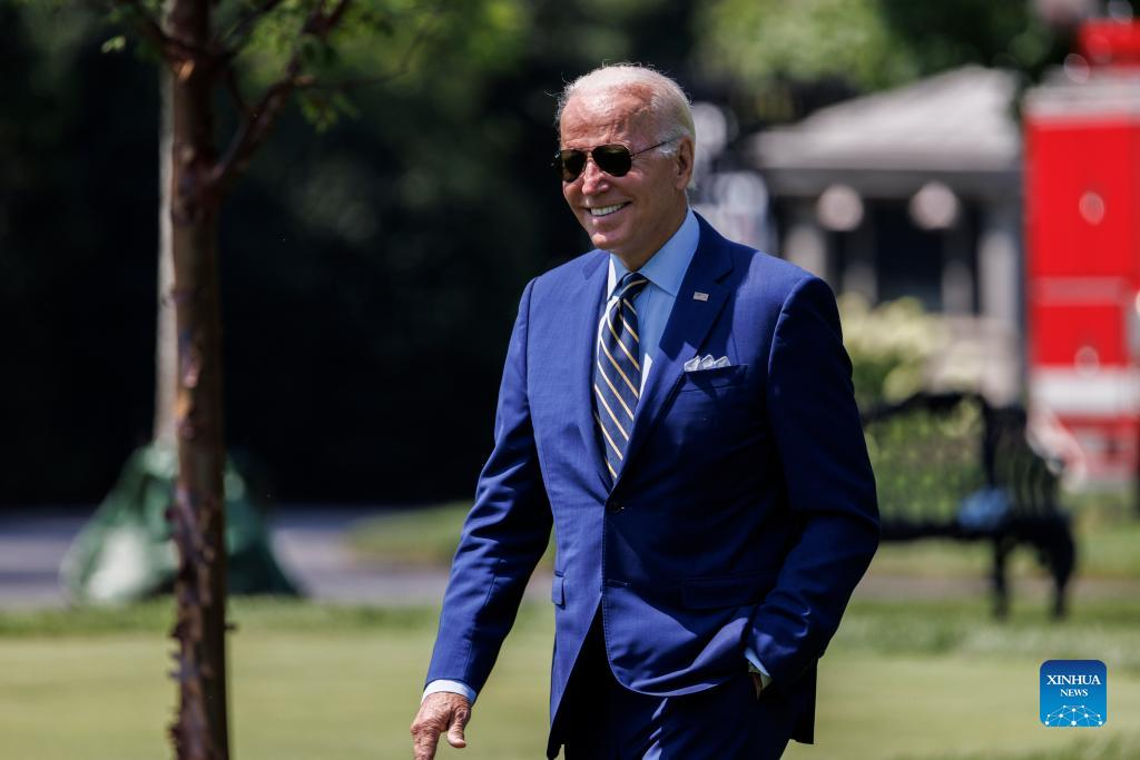 U.S. President Joe Biden walks on the South Lawn to board Marine One at the White House in Washington, D.C., the United States, July 20, 2022. U.S. President Joe Biden tested positive for COVID-19 on Thursday. Biden, who was fully vaccinated and twice boosted, is experiencing very mild symptoms, according to a statement from the White House. (Photo by Ting Shen/Xinhua)
