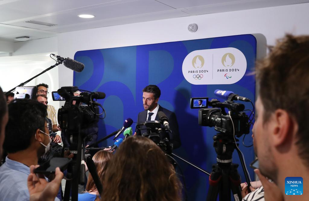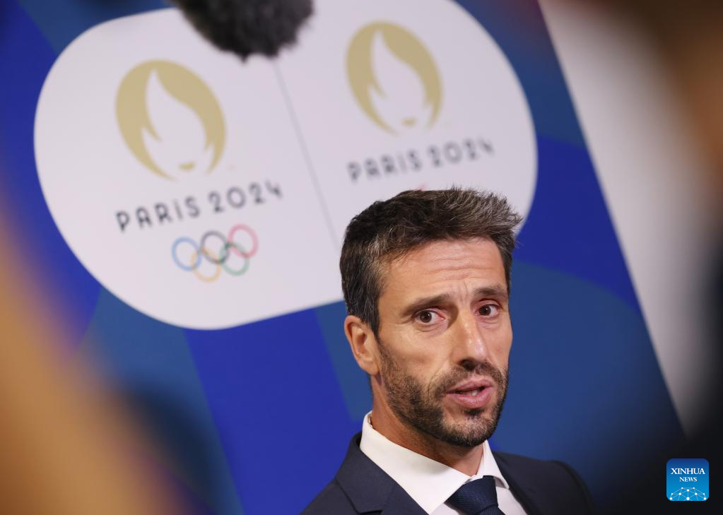 Tony Estanguet, President of Paris 2024, speaks after a press conference in Paris, France, July 25, 2022. With two years to go to the opening ceremony of the 2024 Paris Olympic Games, organizers on Monday revealed "Ouvrons Grand Les Jeux", meaning "Games Wide Open", as the official slogan for the Paris Olympic and Paralympic Games. (Xinhua/Gao Jing)
