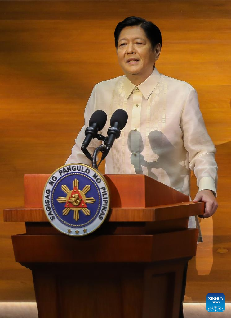 MANILA, July 25 (Xinhua) -- Philippine President Ferdinand Romualdez Marcos on Monday unveiled his plans in his first state of the nation address to ensure economic growth amid global uncertainties.