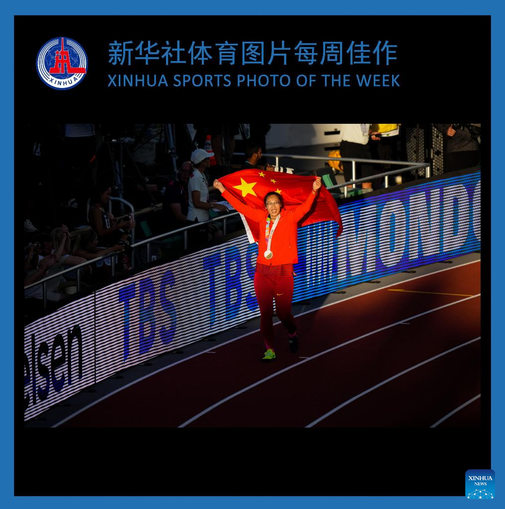 Feng Bin of China celebrates after winning the women's discus throw final at the World Athletics Championships Oregon22 in Eugene, Oregon, the United States, July 20, 2022. (Xinhua/Wang Ying)