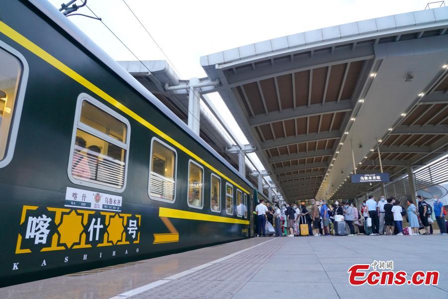 The non-stop tourism train from Urumqi to Kashgar arrived in Kashgar on Monday. The line extends 1,453 kilometers and is the only overnight sleeper train operating in Xinjiang.
