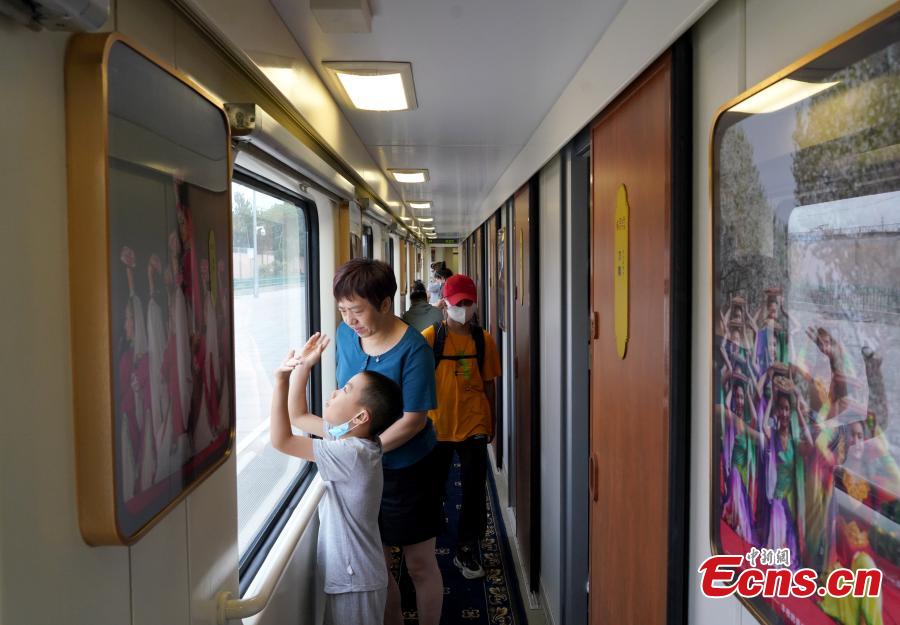 Passengers enjoy the view on the non-stop tourism train in northwest China's Xinjiang Uyghur Autonomous Region, July 25, 2022. (Photo: China News Service/Zhang Shan)