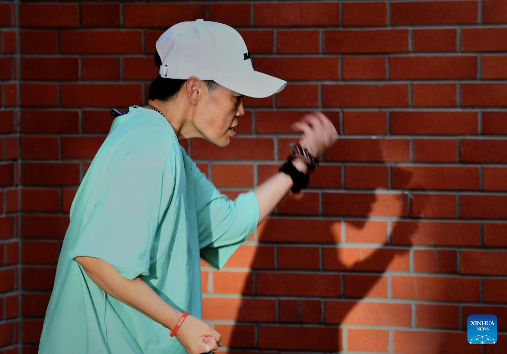 Zhang Ruifang of Huo Mei Gui dance group practices in Zhengzhou, central China's Henan Province, July 21, 2022. In Zhengzhou, central China's Henan Province, there is a female street dance group Huo Mei Gui (meaning Fire Rose). Founded in 2008, the group now has 16 members of 45 to 71 years old.